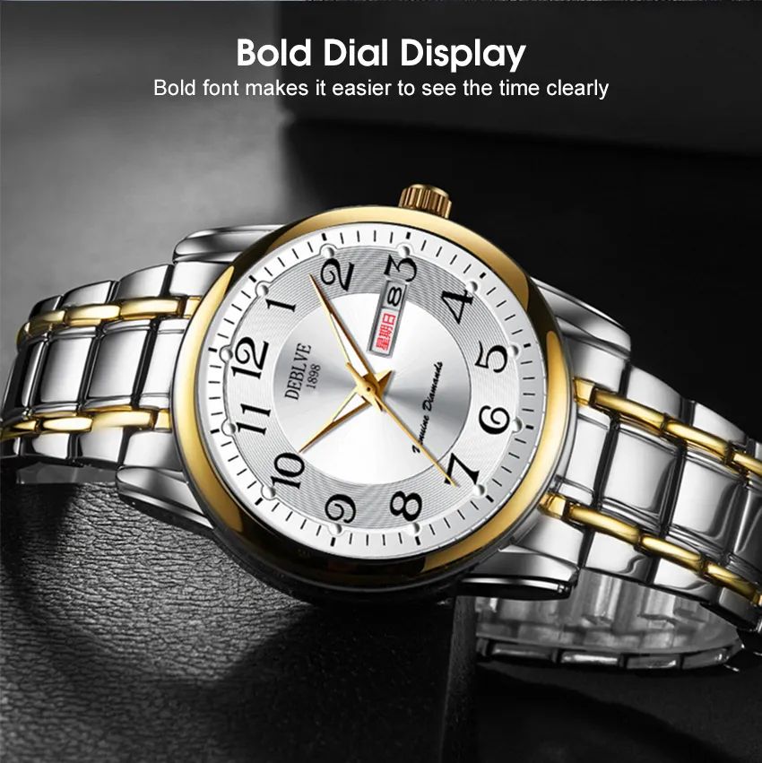 FEDYLON Original طرح #اتومات برای آقایان موتور کوارتز دو تقویم بند استیل رنگ ثابت قاب پشت شیشه نشکن شیشه کریستال ضدخش ضدآب3Atm ❌ارسال به همراه جعبه چوبی #2